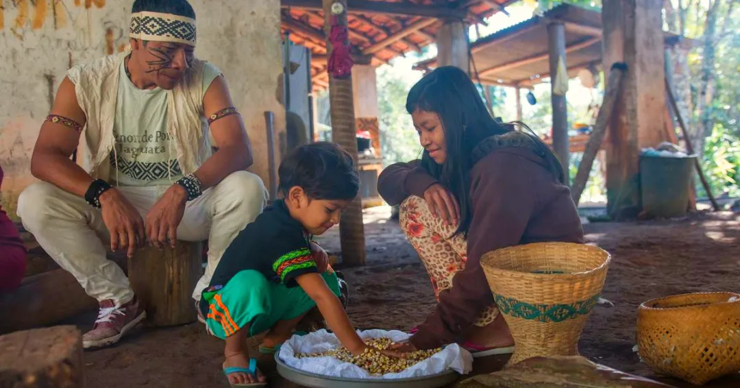 La cultura de los Guaraní Mbya es una manifestación rica de tradiciones ancestrales, donde la lengua guaraní sigue siendo un vínculo vital de conexión entre las generaciones y un pilar central de la identidad comunitaria. En las aldeas de la Tierra Indígena Tenondé Porã, la música y la danza desempeñan roles fundamentales en rituales y celebraciones. Uno de los rituales más importantes es el Nhemongarai, un bautismo espiritual que representa la introducción de los niños al mundo espiritual, asegurando su conexión con los dioses y los espíritus protectores. La gastronomía también es un aspecto esencial de la cultura Guaraní Mbya. Platos típicos como el mbejú, una especie de torta de almidón, y la chipa, un pan tradicional de queso, se preparan con ingredientes simples pero llevan un simbolismo profundo de conexión con la tierra y las tradiciones alimentarias. Además, los visitantes de la Tierra Indígena Tenondé Porã pueden participar en celebraciones comunitarias, como las festividades religiosas y culturales, que ofrecen una oportunidad única de aprender sobre la vida, las costumbres y los valores que sustentan a la comunidad Guaraní Mbya. La cálida hospitalidad y la apertura para compartir sus tradiciones hacen que la experiencia sea una inmersión significativa en la cultura de este pueblo.