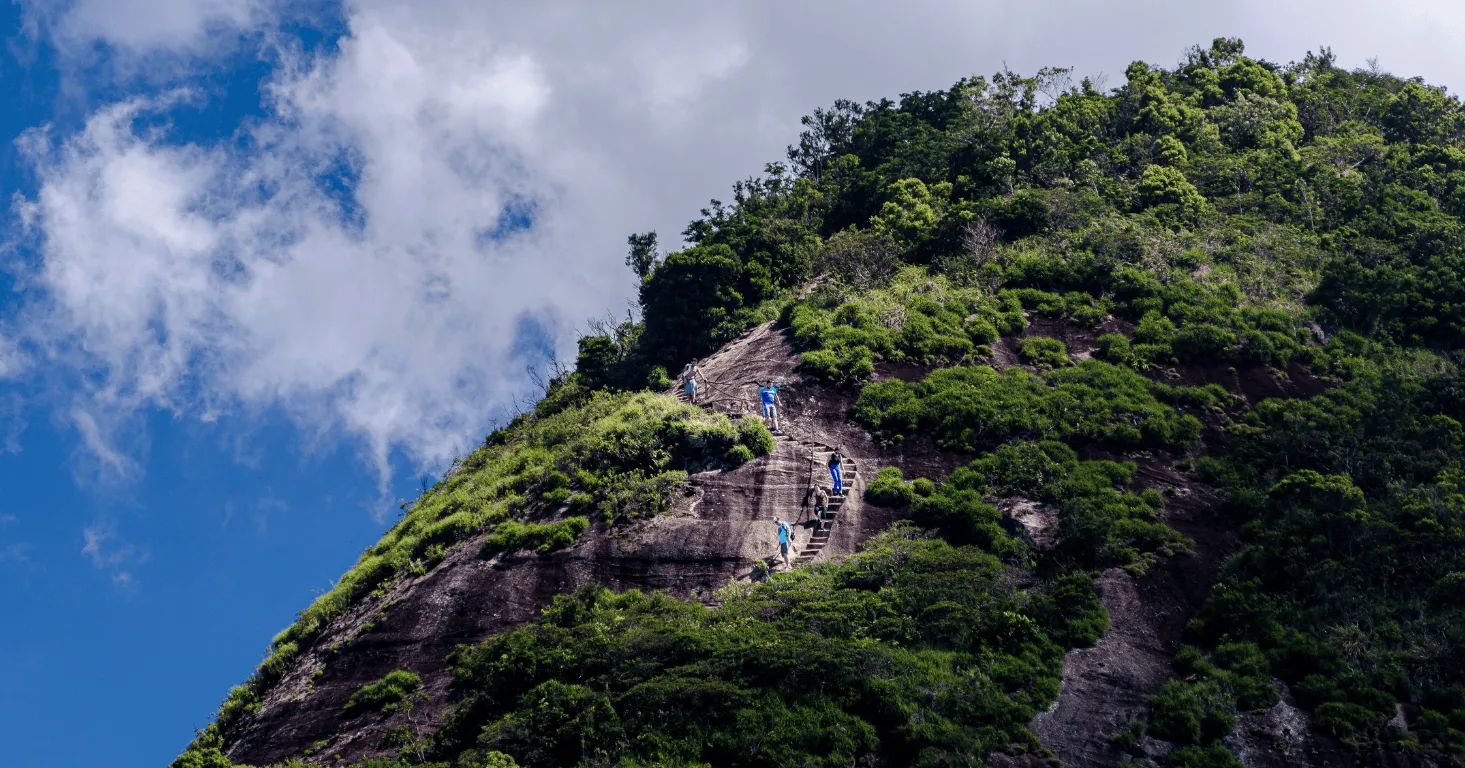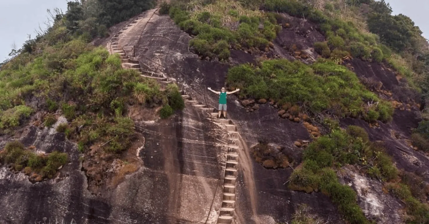 In the final stretch of the trail, you climb a staircase carved directly into the rock. Upon reaching the summit, at 1,021 metres above sea level, you can see the entire city of Rio de Janeiro. The view includes Guanabara Bay, Corcovado, Pedra da Gávea, and much more.
