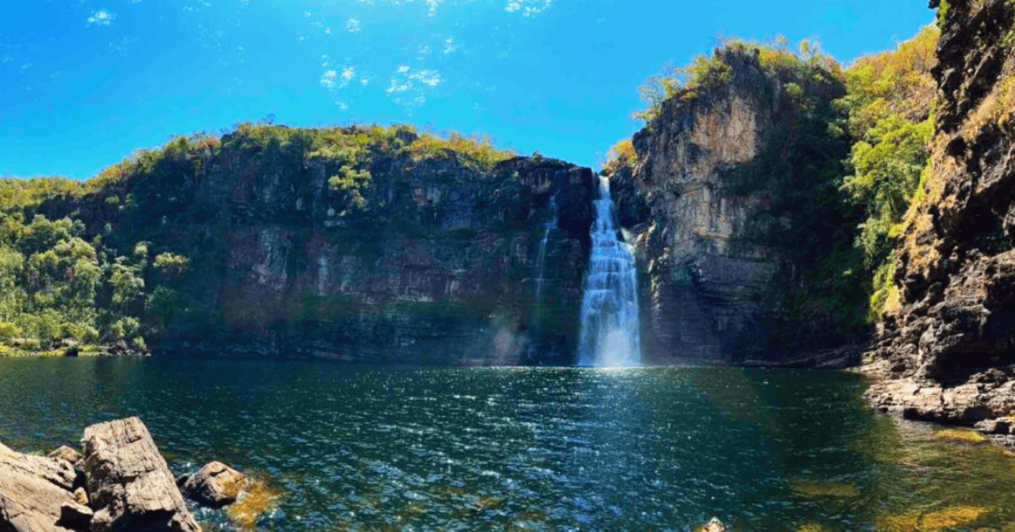 You’ll then follow historic paths once trodden by crystal prospectors to two natural gems: Garimpão Falls and a breathtaking 120-metre waterfall that plunges dramatically into a turquoise pool.
