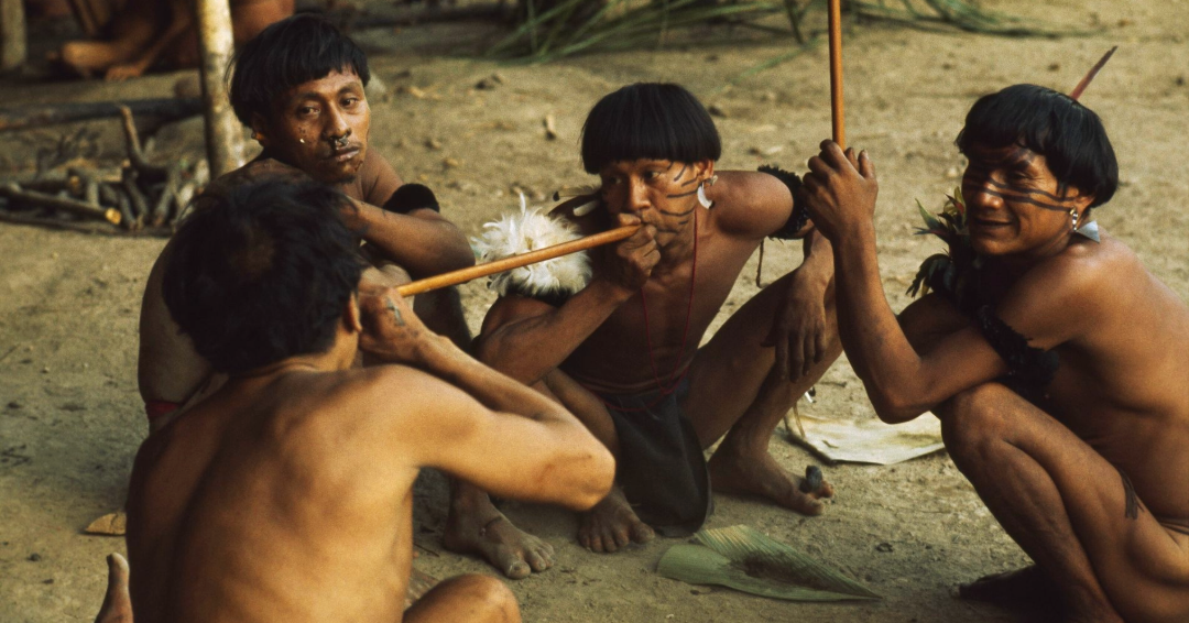 Yanomami culture is defined by their intimate relationship with the forest and a worldview that values the collective. They live in large communal houses called malocas, which shelter multiple families in harmony. The Yanomami language belongs to a unique linguistic branch, with different dialects among subgroups. Artefacts such as baskets, bows, and arrows are essential for daily life but also carry cultural significance. Oral tradition is central to passing down knowledge and myths, while practices like body painting and the use of feathers reflect spiritual connections. Their festivals and ceremonies, such as the reahu, strengthen bonds between communities and honour their ancestors.